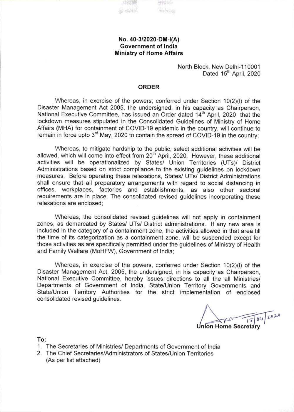 Https Www Mha Gov In Sites Default Files Mhaorderextension 1752020 0 Pdf