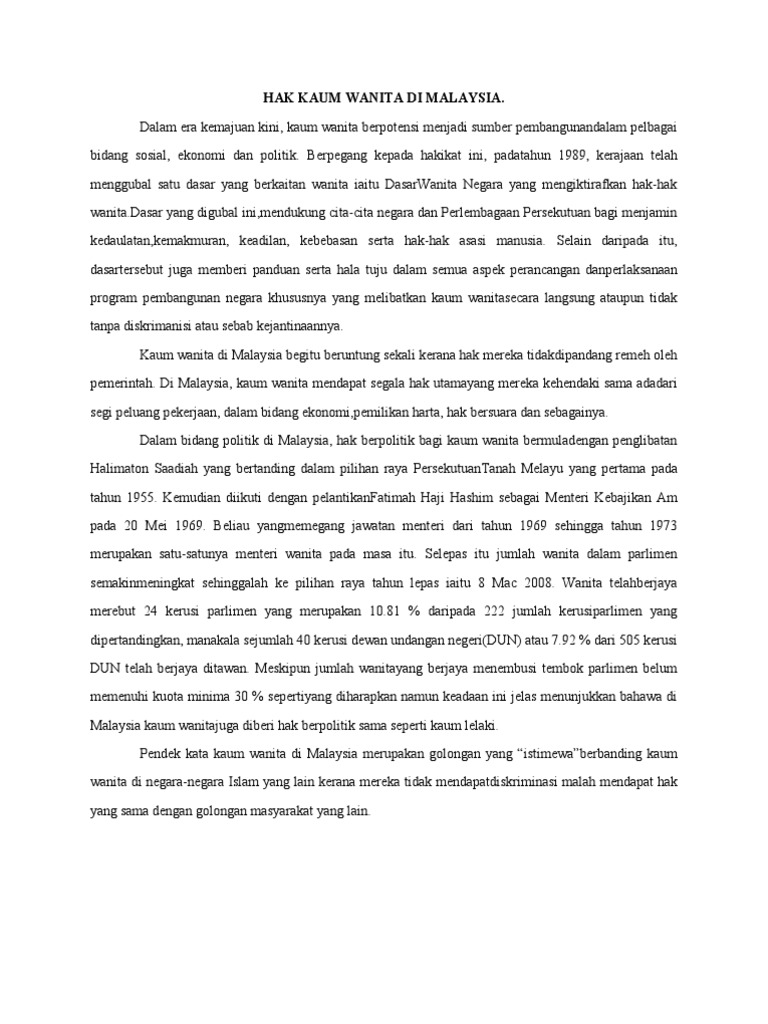 Hak Hak Dan Kebebasan Wanita Di Malaysia
