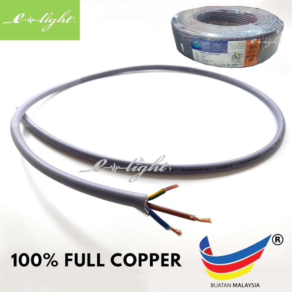100 Pure Copper Malaysia 1 5mm Electric Cable Pvc Cable 100 Meter Colour Shopee Malaysia