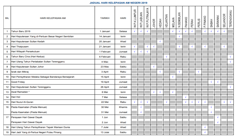 Tarikh Cuti Umum Hari Kelepasan Am Persekutuan Dan Negeri Tahun 2019 Ciklaili