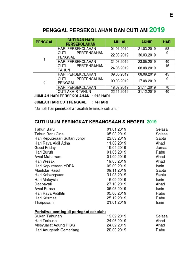 Kalendar Cuti Sekolah Cuti Umum 2019 Takwim Persekolahan Kpm