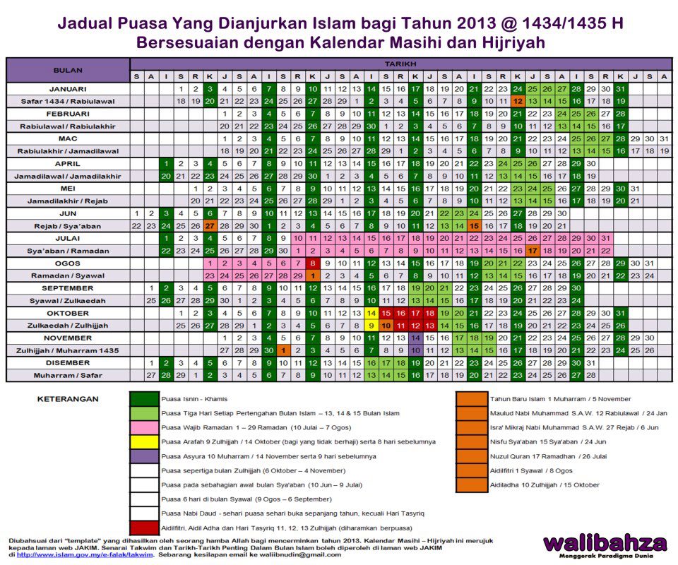 Kalendar Puasa Sunat Dan Wajib 2020 1441 1442h