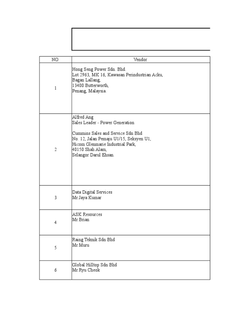 Hong Seng Power Sdn Bhd Butterworth Pulau Pinang Malaysia