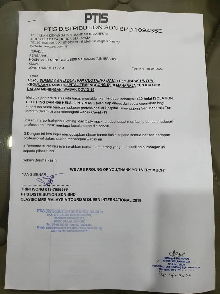 Kee Hua Chee Live Beauty Queen Trini Wong Raised Rm 41 335 To Buy Personal Protective Equipment For 2 Hospitals In Johore Congratulations And Well Done Trini Wong