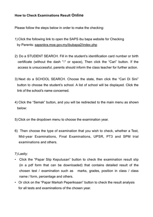 Saps Ibubapa Semak Keputusan Peperiksaan Panduan Semasa
