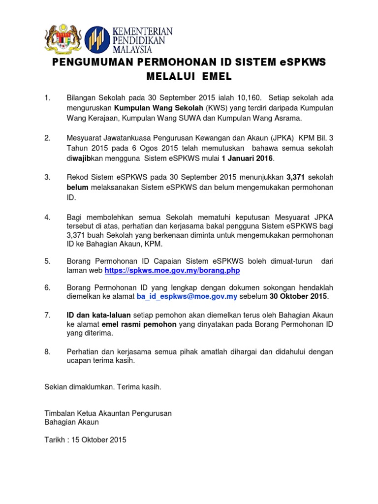 Permohonan Id Sistem Espkws Melalui Email Muat Turun Borang Mobile