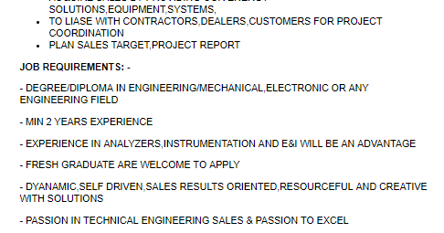 Oil Gas Vacancies Project Sales Engineer Hyperwave Systems Engineering Puchong