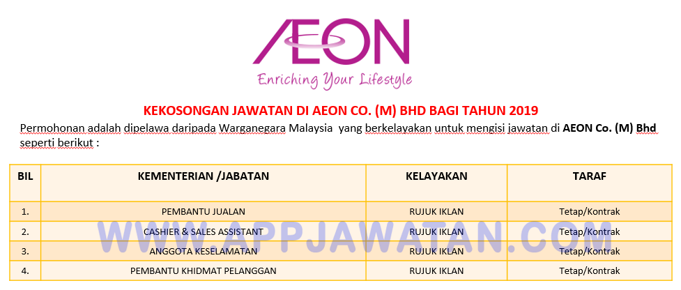 Jawatan Kosong Terkini Di Aeon Co M Bhd Appjawatan Malaysia