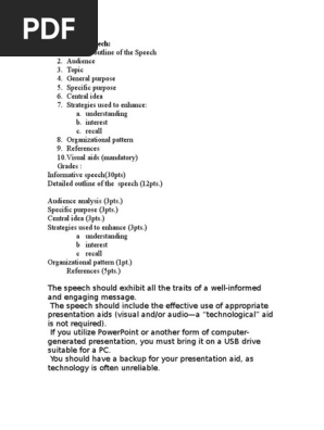 Informative Speech Outline Template