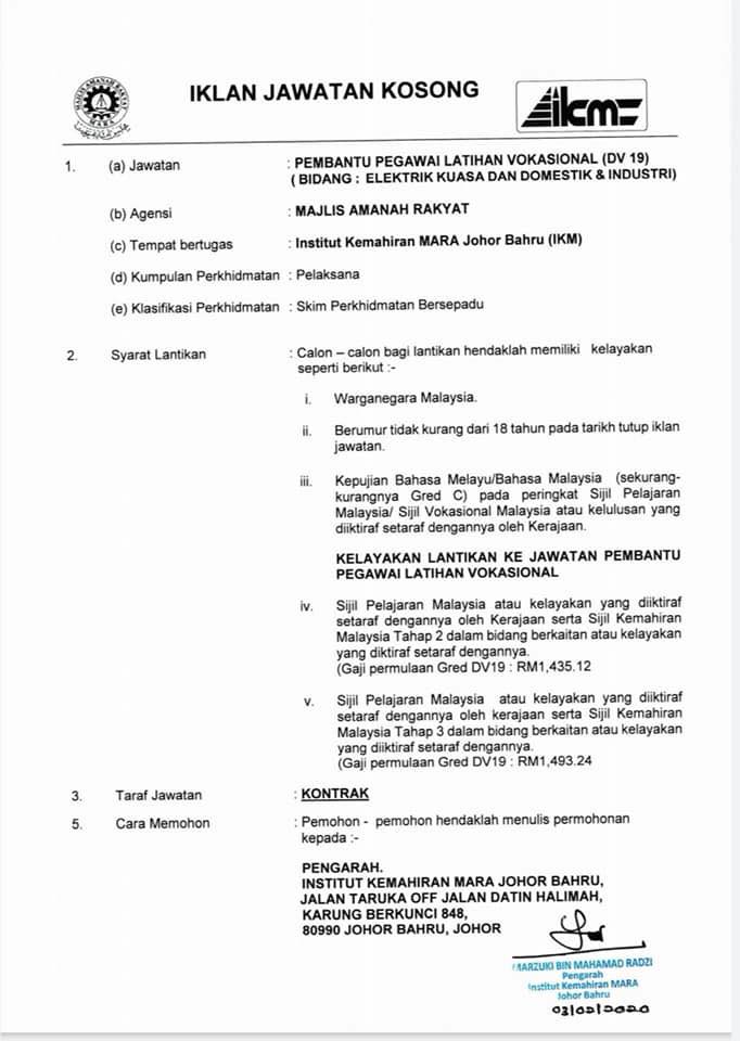 Jawatan Kosong Terkini Di Institut Kemahiran Mara Ikm E Semak Com
