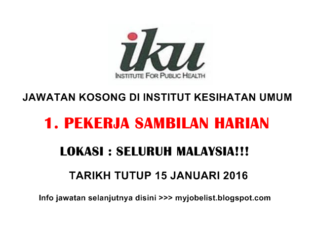 Jawatan Kosong Institut Kesihatan Umum Kementerian Kesihatan Malaysia Kkm Tarikh Tutup 15 Mei 2019 Ejobskini Com Portal Jawatan Kosong Kerajaan Dan Swasta