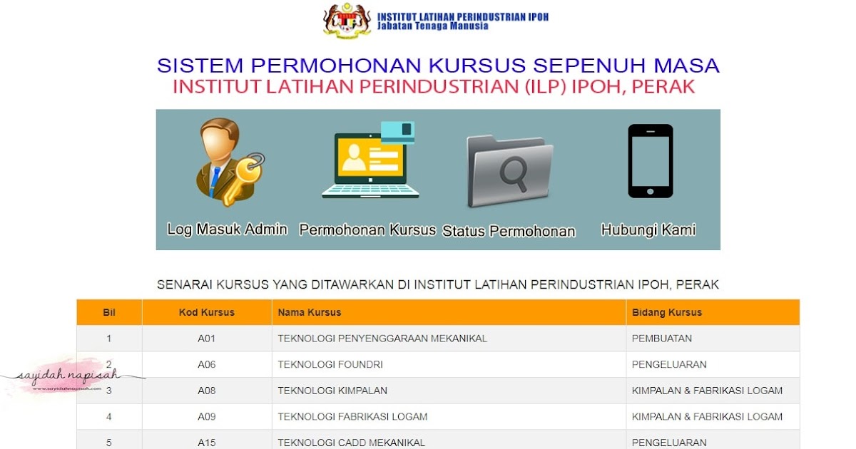 Kemasukan Segera Ke Institut Latihan Perindustrian Ilp Ipoh Sesi Januari 2018 Sayidahnapisahdotcom