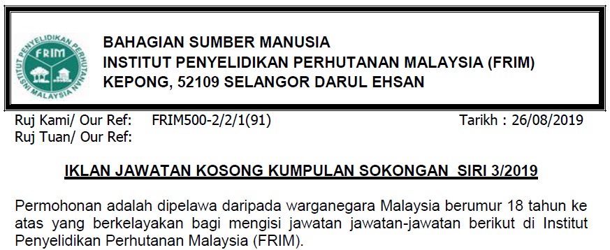 Jawatan Kosong Di Institut Penyelidikan Perhutanan Malaysia Frim 18 September 2019 Jawatan Kosong Kerajaan Swasta Terkini Malaysia 2020 2021
