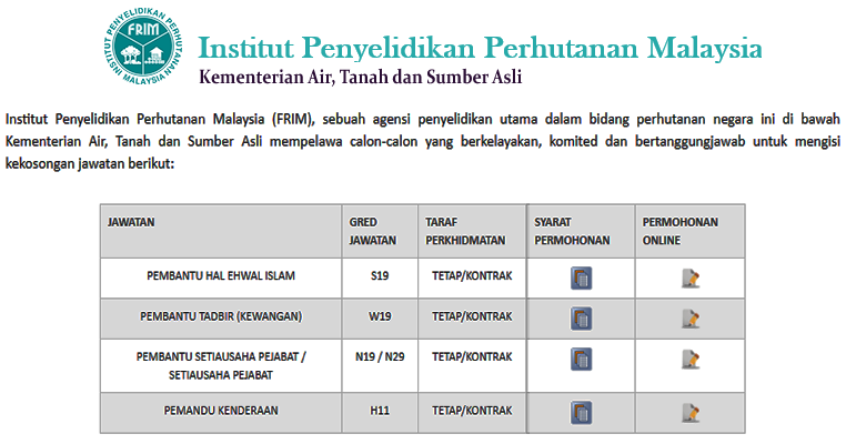 Permohonan Online Jawatan Kosong Di Institut Penyelidikan Perhutanan Malaysia Frim Kelayakan Pmr Spm