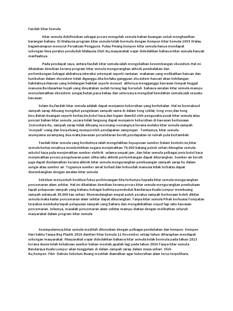 Contoh Karangan Faedah Program Kitar Semula Schoolnjc S Blog