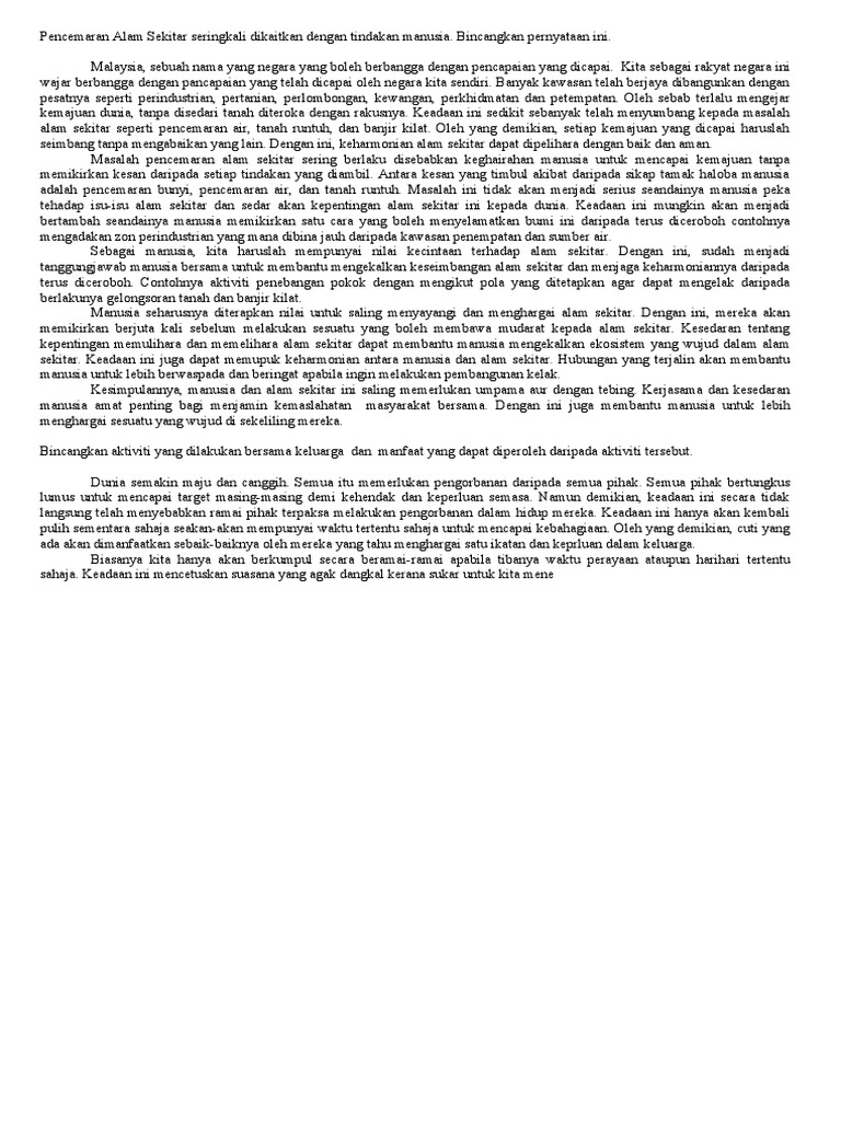 Laman Bahasa Melayu Spm Penulisan Karangan Berpandu Punca Punca Pencemaran Alam Sekitar