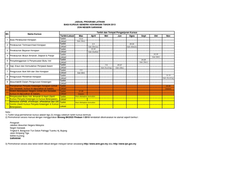 Jadual Perancangan Dan Pelaksanaan Kursus Generik Kewangan Tahun 2013 Zon Sarawak Utk Rujukan Cawangan