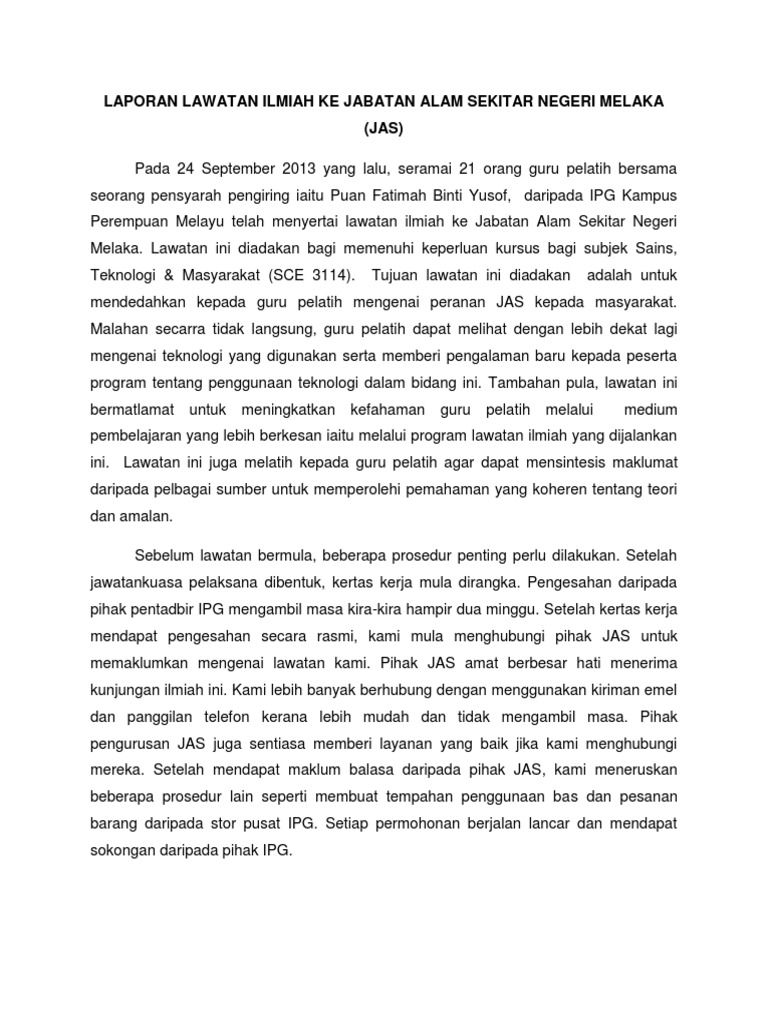 Laporan Lawatan Ke Jabatan Alam Sekitar Melaka