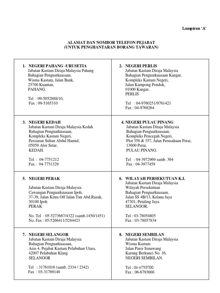 Http Www Customs Gov My En Documents Tender 20lucuthak 202 2016 Doc 204 20 20senarai 20stor 20tender 202 2016 Pdf